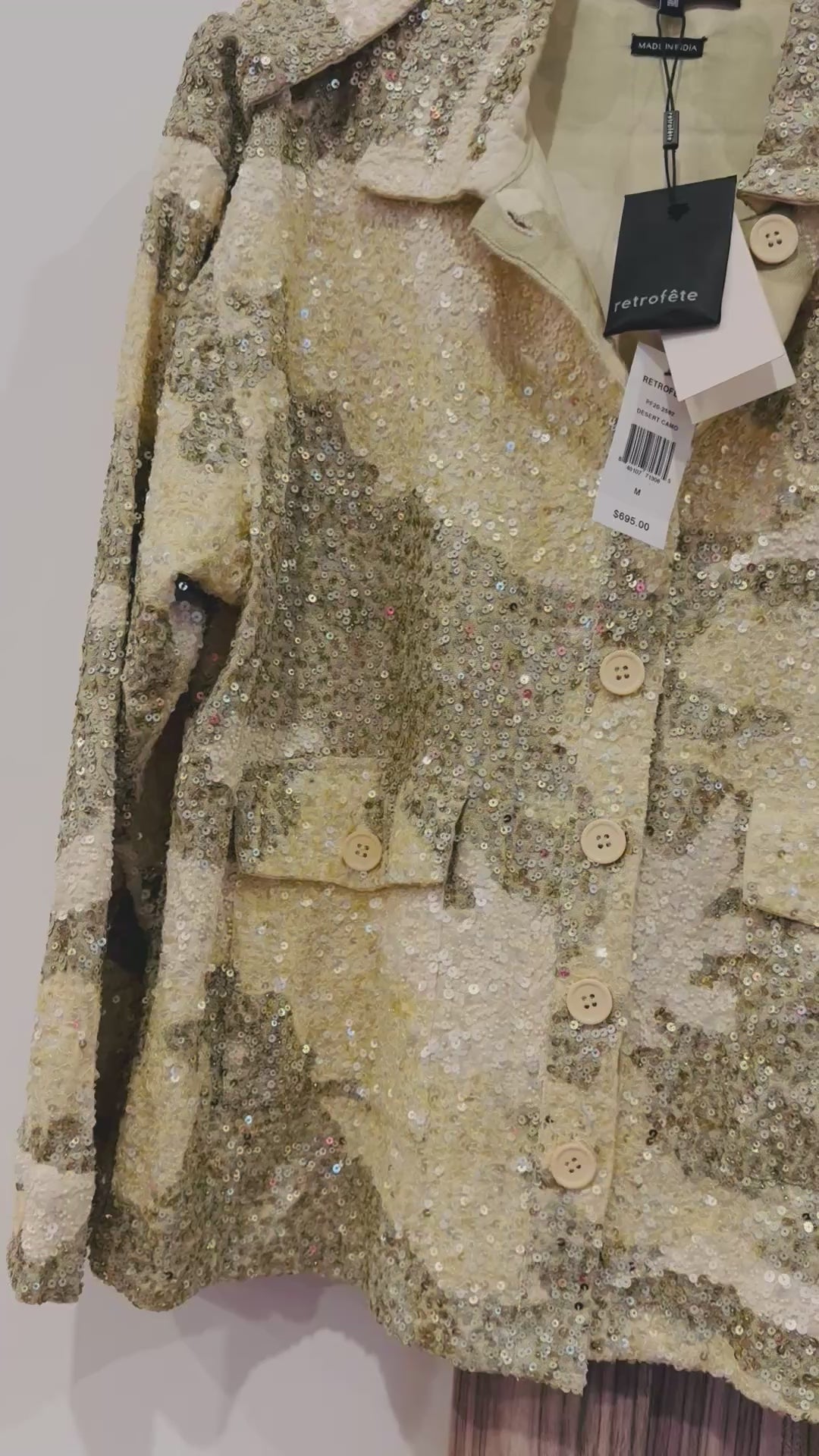 Retrofete IDAN SEQUINED CAMOUFLAGE-PRINT COTTON JACKET